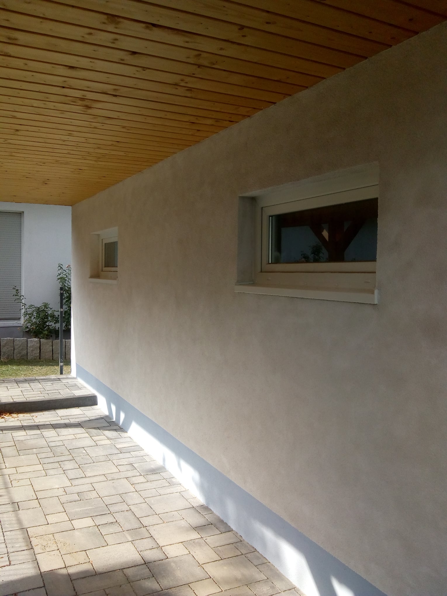 Omietnutie garáže + stiahnutie farby 🚗. Omietnutie novej garáže pomocou cementovo perlivej omietky, penetrácia a následne stiahnutie minerálnou fasádnou omietkou. Vyštukovanie a natretie soklovou farbou. Zároveň jedna z našich posledných prác v Nemecku. 🇩🇪